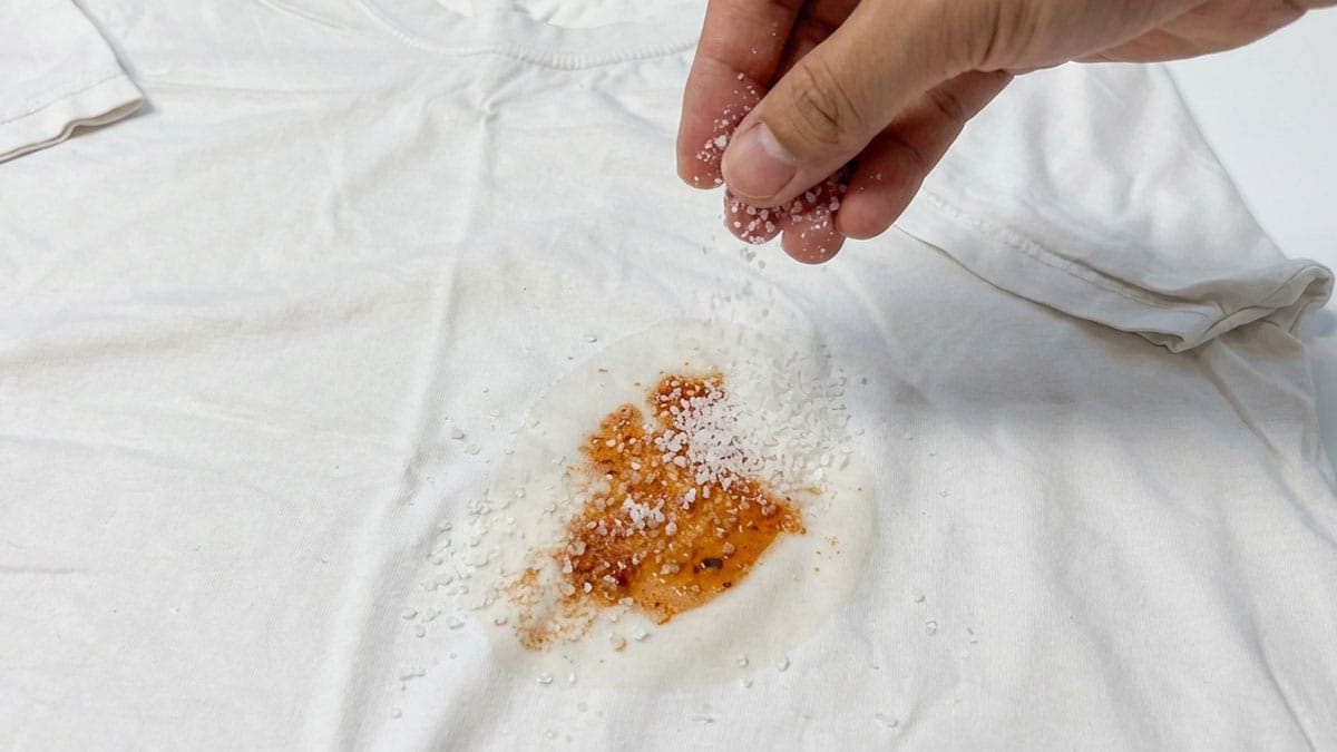 그런데 최근 해외 세탁 전문가들 사이에서 주목받는 방법은 의외로 간단하다. 얼룩에 소금을 뿌리고 5-10분만 기다리면 삼투압 작용으로 수분과 기름, 색소까지 함께 빠져나온다.