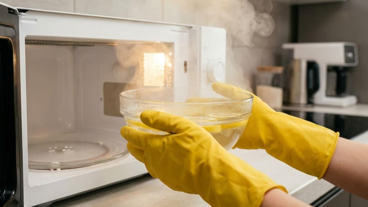 레몬 껍질에 들어 있는 리모넨 성분이 기름을 용해하고, 구연산이 물때를 제거하며, 가열된 수증기가 굳은 때를 불린다. 가열 후 문을 닫고 3~5분 대기하면 스팀 효과가 극대화돼 손쉽게 닦아낼 수 있다.