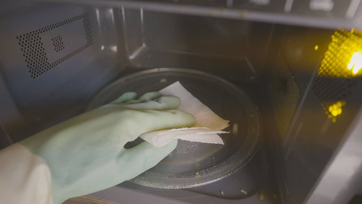 전자레인지를 3~5분 가동해 내부에 수증기가 충분히 맺히게 한 뒤, 문을 바로 열지 않고 3~5분 더 방치하는 것이 핵심이다. 이 시간 동안 수증기가 때에 충분히 스며들기 때문에, 이후에는 물티슈나 젖은 행주로 가볍게 닦기만 해도 깔끔해진다.