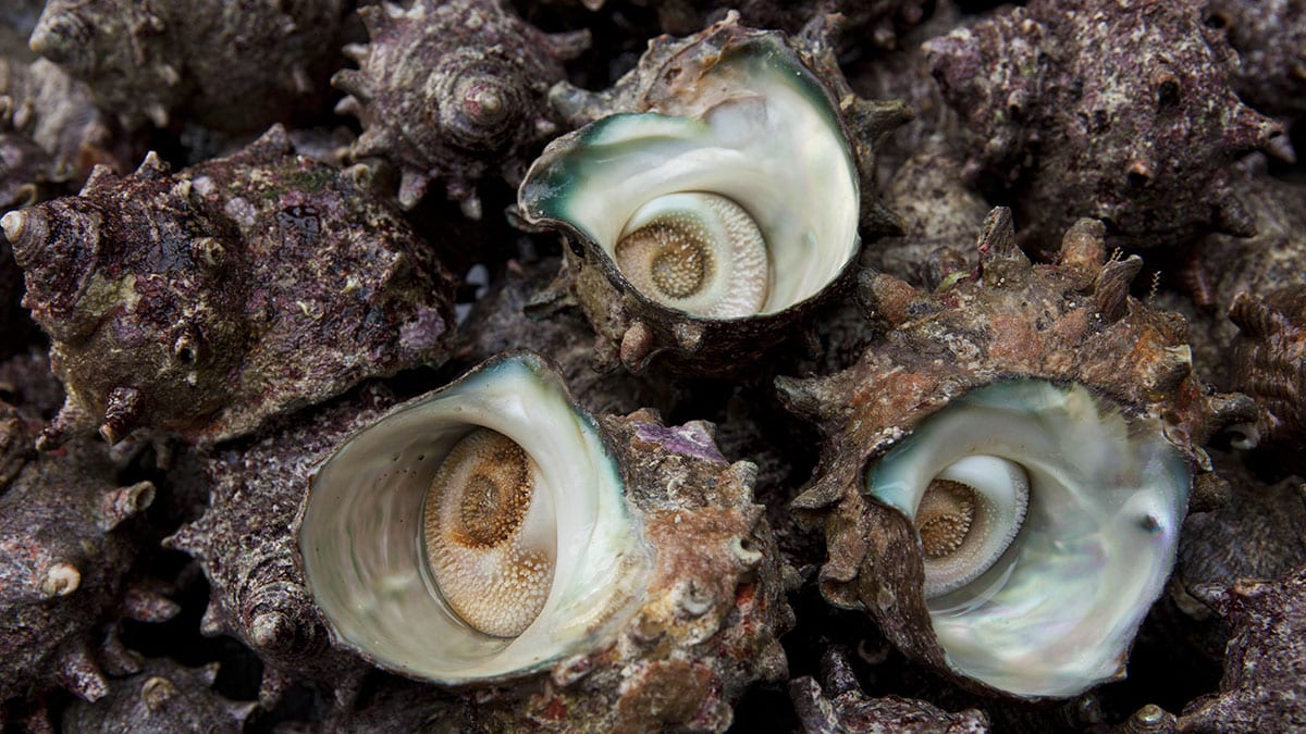 5월부터 8월까지가 제철인 뿔소라는 물살이 세고 험한 수심 5~10m 암반 지대에 몸을 단단히 붙이고 자란다. 이 거친 환경이 바로 뿔소라 맛의 핵심 비결이다.