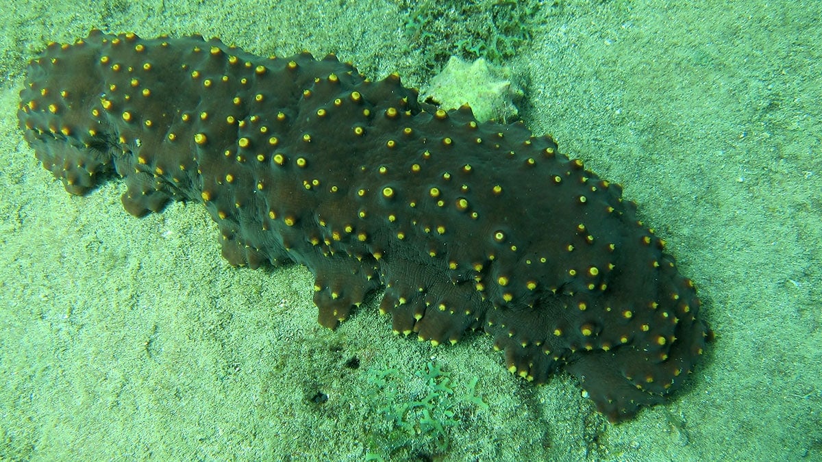 극피동물 해삼강에 속하는 돌기해삼(Stichopus japonicus)은 우리나라에서 주로 식용하는 종류다. 길쭉한 원통형 몸에 무수한 돌기가 솟아 있고, 몸의 신축성이 뛰어나 자유자재로 형태를 바꾼다.