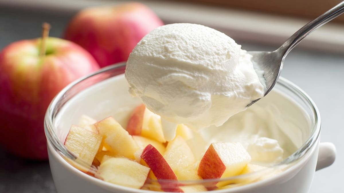 아삭한 사과 위, 꾸덕한 요거트 한 스푼의 마법