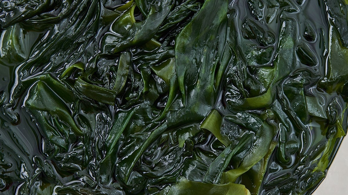마른미역은 건조 과정에서 섬유질이 단단하게 수축된 상태다. 일반 물에 불리면 잎 부분은 빨리 부드러워지지만 줄기 부분은 여전히 질기다.